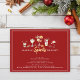 Faites de votre fête un véritable étincelle avec cette charmante invitation de Noël "Making Spirits Bright". Avec une collection de cocktails festifs et d'accents de vacances sur un riche arrière - plan rouge, cette carte donne le ton parfait pour votre fête de Noël. C'est une façon idéale pour les invitations de dîner spécial ou de fête festive, afin que votre événement soit aussi lumineux et joyeux que les boissons représentées. Le script élégant et l'imagerie vibrante capturent la joie et la chaleur de la saison, ce qui en fait un moyen mémorable de partager votre joie de vivre.