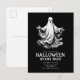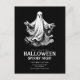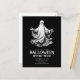 Carte postale d'invitation effrayante pour une soirée d'Halloween avec un fantôme noir et blanc.