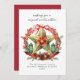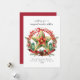 Joyeux solstice ! Célébrez la plus longue nuit de l'année avec cette belle carte Pagan Yule Winter Solstice de Noël. Cette couronne d'étoile pentagramme d'aquarelle est remplie de champignons, de glands, de pointes de pilier de fluorite vert, de baies rouges, de cloches, de plumes et de verdure, surmontée d'un arc rouge. Texte prêt à customiser avec votre nom et votre adresse.