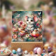 Cartes Pour Fêtes Annuelles Souris d'aquarelle gaie Floral Pâques Tea Party