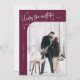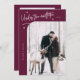 Carte de vacances minimale et fantaisiste pour les jeunes mariés célébrant leur premier Noël ensemble en tant que mari et femme avec un texte qui dit "Sous le Mistletoe Forever" en haut de votre photo avec un coin incurvé. L'arrière - plan est la canneberge.