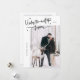 Carte de vacances minimaliste et élégante pour les jeunes mariés célébrant leur premier Noël ensemble en tant que mari et femme avec un texte qui dit "Sous le Mistletoe Forever" en haut de votre photo avec un angle incurvé. L'arrière - plan est blanc.