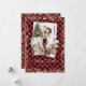 Carte de Noël scintillante de buffle rouge avec un accueil de calligraphie brillant, neige dorée, étoiles et lumières magiques de Noël sur le devant. Un buffle rouge plaid l'arrière - plan avec de la neige et des lumières scintillantes et des étoiles à l'arrière. Personnalisez facilement cette carte de Noël scintillante avec vos photos, votre texte et le nom de famille. Créez une photo magique Joyeuse carte de Noël pour votre famille et vos amis cette période de fêtes.