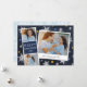 Cute Hanoukka carte photo dispose d'une bande de cabine photo avec deux photos et un panneau de texte bleu marine, ainsi qu'un instantané inspiré de la caméra instantanée avec une légende manuscrite. Personnalisez avec l'année et votre nom de famille ou message personnalisé, sur un arrière - plan bleu marine parsemé de flocons de neige dessinés à la main et d'étoiles bleues et dorées.