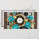 Cartes Pour Fêtes Annuelles Steampunk Clock and Turquoise Roses on Striped