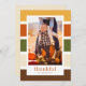 Merci ! Envoyez votre message d'action de grâces à votre famille et à vos amis avec cette carte d'action de grâces moderne et classique. Il présente des rayures modernes de blocs de couleurs d'automne. Personnalisez en ajoutant une photo, vos noms, votre message et d'autres détails.