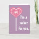 "Je suis un suceur pour toi." Carte de voeux Valentine's Day avec suceur de coeur.