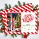 Prenez l'esprit de la saison avec cette charmante carte de Noël, conçue pour apporter joie et chaleur à vos salutations de vacances. La carte est ornée d'un arrière - plan blanc, bordé d'une motif rayée festive de sucre de canne rouge et blanc qui exsumera les fêtes de fin d'année. Au coeur de la carte, votre photo préférée occupe le devant de la scène, à côté d'un graphique rouge vintage rétro "Joyeux Noël" qui ajoute une touche intemporelle. En dessous de ce salut chaleureux, il y a suffisamment d'espace pour votre nom de famille et vos noms individuels, permettant une touche personnelle qui rend votre carte unique. Le dos de la carte reflète le motif à rayures de sucre de canne, assurant une conception cohésive et joyeuse de l'avant à l'arrière. Parfait pour partager l'amour et la joie avec la famille et les amis, cette carte est un souvenir festif qui sera chéri par tous ceux qui la reçoivent.
