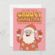 Diffusez l'amour de cette période de vacances avec une touche rétro! Dotée d'une Père Noël clignotante, vêtue d'un costume à fleurs, cette illustration colorée et amusante donne une ambiance super aux célébrations de Noël et du Nouvel An. Avec son design audacieux et d'inspiration vintage, cette carte est parfaite pour tous ceux qui aiment un message de vacances nostalgique et heureux-go-chance.