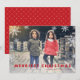 Simple et élégant avec une superposition de flocons de neige festive sur les bords, notre carte de vacances présente votre photo préférée au format paysage avec "Merriest Christmas" et votre message personnel en typographie rouge moderne et gras.