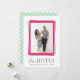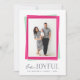 Moderne carte photo de vacances dispose de votre photo verticale préférée encadrée par des éléments géométriques dans des tons vifs. "Be Joyful" apparaît en dessous dans une combinaison de script manuscrit et de lettres bloc. Personnalisez avec vos noms de famille et l'année en bleu nuit muet pour une déclaration chic. Cartes inversées à bandes diagonales vertes et blanches.