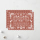 Terracotta Love, Peace, Joy papel picado Carte de style pétoncle de Noël avec plusieurs éléments de Noël tels que la crèche minimale, les arbres de Noël, cerfs, anges, colombes et le texte "Amour, Paix et Joie" "Croire" et "Fa la la la la la la" en blanc sur la couleur terre cuite. Il est également orné de fleurs et de points. Cette carte de vacances dans le style art populaire mexicain est personnalisable.