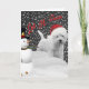 Westie au chapeau de Père Noël pose avec un bonhomme de neige avec le texte "Qu'il neige". Un vœu de vacances pour les amoureux des chiens.