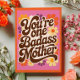 Célébrez l'énergie inépuisable de maman avec la carte de fête pour la fête des mères "You're One Badass Mother – RETRO Funny Mother's Day Holiday Card". Avec une typographie audacieuse d'inspiration vintage et une ambiance rétro ludique, cette carte délivre un message confiant et positif avec un humour impertinent.