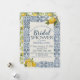 Invitez la famille et les amis à célébrer la future mariée avec cette invitation de douche sur le thème méditerranéen ! Une combinaison classique de citrons et de carreaux bleus. Ce style est populaire dans toute l'Italie, comme à Positano sur la côte amalfitaine, en Toscane, en Sicile et dans les îles, ainsi que dans certaines régions de Grèce, du Portugal et d'Espagne. Le devant de ces cartes est orné d'un cadre composé de différents carreaux italiens, tous dans une palette de couleurs bleu marine et jaune. Le texte apparaît dans une calligraphie manuscrite chic et une typographie serif élégante. Le nom de la mariée apparaît en bleu clair. Nous avons choisi de mettre le nom en minuscules, mais cela peut être facilement modifié. Pour que le nom du lieu et la réponse soient légèrement plus grands que le reste des détails de la douche, nous avons utilisé des majuscules.