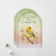 An arch shape, frames with two green arches and an image of a Goldfinch