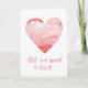 Cette carte simple et à la mode de Saint-Valentin comporte une conception avec un coeur rouge d'aquarelle avec le texte "toute que nous avons besoin est amour" sur l'avant. Le texte intérieur lit "tous que j'ai besoin est vous" avec un motif de coeur d'aquarelle du côté gauche à l'intérieur.