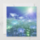 Un champ de fleurs éthérées et verdoyantes baigne dans l'éclat d'un soleil brillant, donnant à la scène une qualité onirique et tranquille. Les fleurs, allant des teintes profondes aux bleues claires, se détachent contre la végétation luxuriante et le ciel bleu doux. Une carte avec un message d'espoir pour un ami ou un membre de la famille qui traverse une période de tristesse, de perte, d'éclatement, de dépression ou juste besoin d'encouragement.