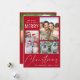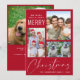 Carte de voeux moderne rouge avec un collage photo de 3 images, "We Wish You A Very Joyeux Noël" dans un mélange de simple typographie blanche et un élégant script blanc, et votre nom et l'année. Ajoutez une 4ème photo et votre message personnalisé et vos prénoms au dos.