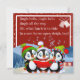 Illuminez la journée de quelqu'un avec notre Carte de Fêtes Trois Pingouins Mignons Chantant Vive le Vent. Cette carte ludique et festive est parfaite pour souhaiter à vos amis et à votre famille une joyeuse période des fêtes. Laissez les pingouins mettre un sourire sur le visage de chacun !