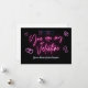 Exprimez votre amour dans des teintes vibrantes avec notre carte de la Saint-Valentin néon. Les mots "Tu es mon valentin" dansent dans une police de caractères script étincelante, ornés de rose et de rouge néon, créant un contraste saisissant sur le fond noir élégant. Des cœurs néon ludiques sont dispersés autour, ajoutant une touche supplémentaire de radiance. Rendez-la unique en personnalisant la carte avec votre propre message ci-dessous, qu'il s'agisse d'un doux "ton meilleur ami/ton amour" ou de vos propres sentiments sincères.
