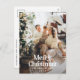 Carte de Noël avec photo à débordement moderne élégante et rustique, aquarelle botanique séchée, couleurs feutrées. Vert sauge, vert chasseur, noir, blanc et brun moderne dans la gamme de couleurs tendance.