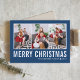 Joyeux Noël! Envoyez vos souhaits chaleureux cette saison avec cette carte de Noël personnalisable de collage photo. Il présente une typographie simple avec un arrière - plan bleu. Personnalisez en ajoutant vos photos, noms, année et autres détails. Cette carte de Noël moderne est disponible en d'autres couleurs et en carton.