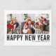 Bonne année ! Carte postale personnalisable Happy New Year avec typographie simple en noir. Personnalisez en ajoutant trois photos, noms, année et autres détails. Cette carte postale moderne du Nouvel An est disponible en d'autres couleurs et en carton.