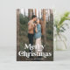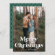 Carte de vacances élégante et tendance affichant votre photo de fond avec "Joyeux Noël" dans une couverture de police blanche de style rétro. Personnalisez le devant du carte photo de vacances en ajoutant votre nom/nom d'entreprise, l'année ou tout autre texte personnalisé. La carte revient pour présenter une deuxième photo et votre message personnalisé avec un arrière - plan à motif demi-cercle vert et blanc.