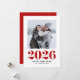 Joyeux 2022 ! Envoyez vos souhaits de vacances à vos proches avec cette carte à plat moderne et personnalisable Happy New Year. Il présente une typographie rouge et audacieuse. Personnalisez en ajoutant une photo, un nom et d'autres détails carrés. Ce carte photo de Nouvel An rouge et blanc est disponible en d'autres couleurs et en carton.