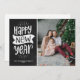 Bonne année ! Envoyez des voeux de Nouvel An à votre famille et à vos amis avec cette carte de séjour photo personnalisable. Il présente une typographie rustique sur un faux arrière - plan en damier avec un motif de neige. Personnalisez en ajoutant un nom et une photo.