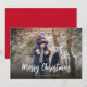 Cette joyeuse carte de voeux de Noël, avec un arrière - plan de couleur rouge solide sur le dos, a une typographie simple, et script de calligraphie, et est un modèle photo, un style minimaliste classique, moderne, minimal, rustique.