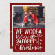 Celebrate the holidays with a personalized touch! This charming Christmas card features the festive phrase "We Woof You a Merry Christmas" in playful typography, complete with whimsical tree and star accents on a rich red background. The upper half of the card allows for a customizable photo, making it perfect for sharing a family snapshot or a cherished moment with your furry friend. This card is ideal for dog lovers, families, and pet owners who want to send a warm, heartfelt greeting with a personal twist. Add your favorite photo, making it uniquely yours for a memorable holiday greeting.