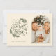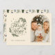 Une carte de vacances à l'arc religieux moderne avec une frisson d'espoir en lettres blanches en vert foncé. Au verso est un motif de feuilles verts et navals et de pins.