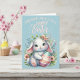Cette carte de Pâques sucrée est surchargée d'une jolie petite lapin blanc et chéri tenant un oeuf de Pâques peint au milieu d'un bouquet de verdure fleurie aux couleurs pastel. L'arrière - plan bleu-bébé est le complément parfait pour le texte rose de type vintage qui déclare "Un lapin vous souhaite une Pâques heureuse". Personnalisez en customisant le message à l'intérieur et/ou en ajoutant vos noms - ou en laissant ce champ vide pour ajouter des signatures manuscrites plus tard.