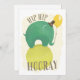 Carte "Hip hip hooray" avec éléphant vert.