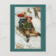 Belle carte de Noël vintage montrant deux enfants glissant sur une pente enneigée sur leur traîneau. D'autres enfants jouent dans l'arrière - plan.