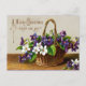 Illustration vintage de la carte de Noël victorienne avec un panier de fleurs et saluant "Un joyeux Noël brillant et gay."