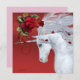 Une belle licorne blanche est décorée de rubans rouges et de roses.