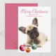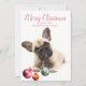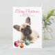 Un adorable chiot français de bulldog avec des ornements de Noël à ses pieds, une carte de voeux de vacances personnalisée. Un accueil moderne et contemporain pour les vacances, et amoureux de les chiens ! Remplacez la photo par la photo de votre chien. Assurez-vous d'attraper sa personnalité ! Enregistrez-en un comme mémoire de carte de voeux pour regarder en arrière chaque année.
