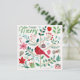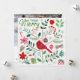 Vacances Joyeuses V | Cette œuvre d'art festive "Joyeux" représente un joli cardinal rouge entouré de cadeaux de Noël, de poinsettias et d'autres éléments de fêtes de fin d'année. | 54664HR