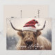 Adorable vache des Highlands portant un chapeau de Père Noël festif à carreaux, la carte de vœux idéale pour tous vos proches. « Joyeuses Fêtes » écrit en script sur le devant. Personnalisez avec le message et la salutation de votre choix au verso. Tout le monde sera ravi de recevoir cette carte de saison.