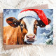 Cartes Pour Fêtes Annuelles Vache en chapeau de Père Noël drôle de Noël