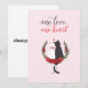 Deux chats - noir et blanc - s'assoient enlacés, leurs queues formant un cœur, encadrés de roses rouges et de feuilles vertes. Sur un fond rose doux, cette carte romantique célèbre l'unité et l'amour. Inspirée par les âmes sœurs, elle est parfaite pour la Saint-Valentin ou les anniversaires. Donnez un amour qui dure.