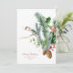 Aquarelle moderne verdure botanique d'hiver, bois, cônes de pin et baies rouges plat Carte de vacances. Script "Joyeux Noël" et police moderne utilisé. Ajoutez votre photo préférée et customisez votre message personnel.