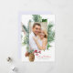 Aquarelle moderne verdure botanique d'hiver, bois, cônes de pin et baies rouges plat Carte de vacances. Script "Joyeux Noël" et police moderne utilisé. Ajoutez vos photos préférées et customisez votre message personnel.
