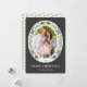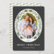 Cette carte festive de Noël présente une photo ovale encadrée de verdure hivernale et de baies rouges sur un arrière - plan gris ardoise foncée. Personnalisez cette carte de vacances moderne et élégante en ajoutant votre photo et votre nom de famille.