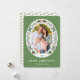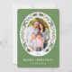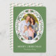 Cette carte festive de Noël présente une photo ovale encadrée de verdure hivernale et de baies rouges sur un arrière - plan vert clair. Personnalisez cette carte de vacances moderne et élégante en ajoutant votre photo et votre nom de famille.