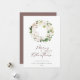Aquarelle rustique chic blanc floral feuille feuillage, carte de Noël. Caractéristiques, Joyeux Noël en calligraphie mauve poussiéreuse avec 3 lignes pour votre message, nom et année avec coordination solide appui couleur mauve