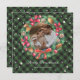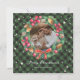 Elégante carte verte de Noël avec une photo à l'intérieur d'une couronne d'aquarelle de Noël. Personnalisez facilement cette carte de Noël avec votre photo et le nom de famille.